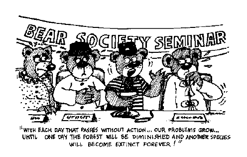 Gradually there was a shift in the activities of the CC and many of the cubs, including Brian lost interest. The CC declined drastically, and the cubs separated into their own small groups. BS members got very concerned that because of the decline of the CC, they may never be able to gather the cubs together, and the bear community as they knew it would die.
